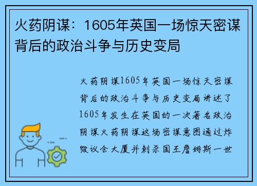 火药阴谋:1605年英国一场惊天密谋背后的政治斗争与历史变局