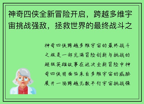 神奇四侠全新冒险开启,跨越多维宇宙挑战强敌,拯救世界的最终战斗之旅